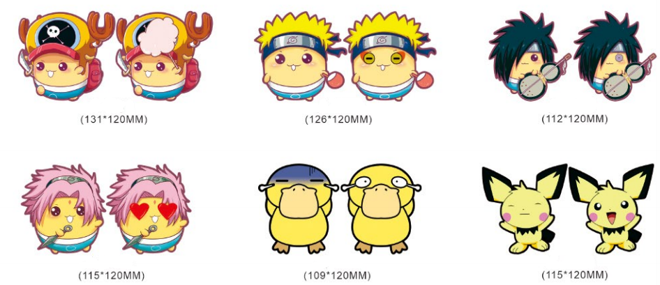 Including but not limited to Demon Slayer, Naruto, Kimetsu, sailor moon, Jujutsu kaisen, Marvel series, pikachu, sexy girl, disney cartoon characters etc.